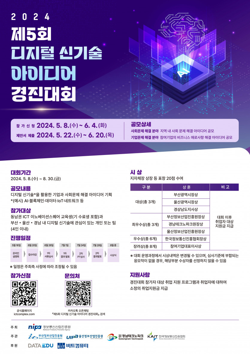 - 주관 : 부산정보산업진흥원, 울산정보산업진흥원, 경남테크노파크, 한국정보통신진흥협회